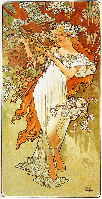 1896-Alfons Mucha (1860-1939). Der Frühling, 1896. Foto WikiArt.