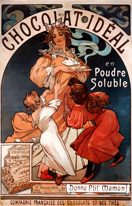 1897-Alfons Mucha (1860-1939). Werbung für Chocolat Idéal, 1897. Foto WikiArt.