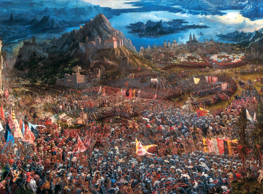 Albrecht Altdorfer (1480-1538). Die Alexanderschlacht (Schlacht bei Issus), 1529. Alte Pinakothek München.