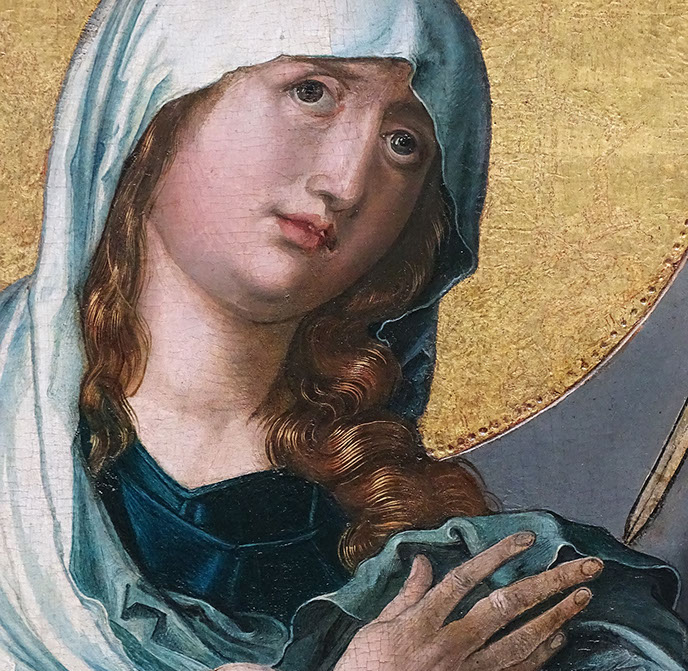 Albrecht Dürer (1471-1528). Maria als Schmerzensmutter. Ausschnitt. Alte Pinakothek München.