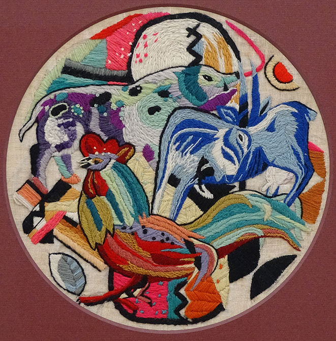 Adelheid Campendonk. Wollstickerei nach Entwurf von Franz Marc: Hahn, Ziege und Eber, 1914.