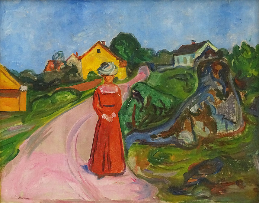 Edvard Munch (1863-1944). Strasse in Asgardstrand mit Frau im roten Kleid, 1901-03.