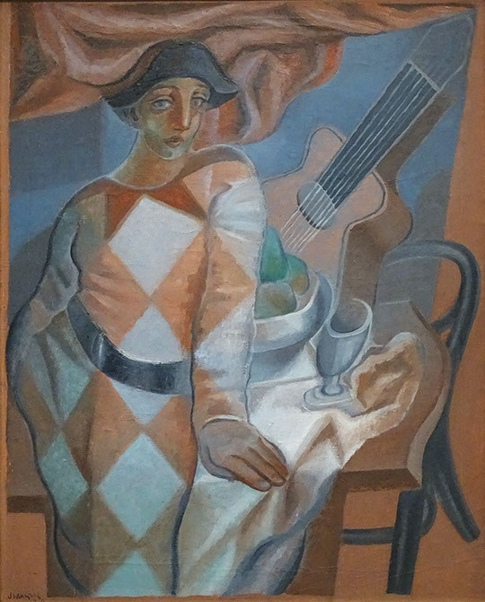 Juan Gris (1887-1927). Arlequin devant une table, 1924. Pinakothek der Moderne München.