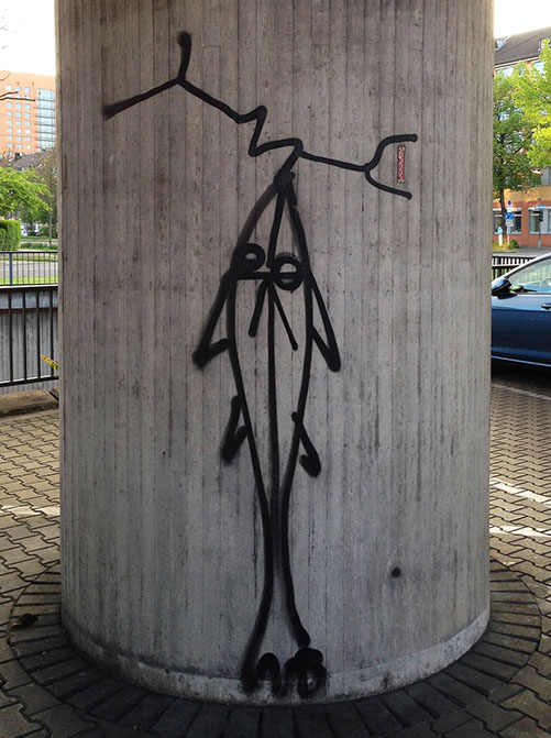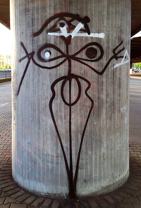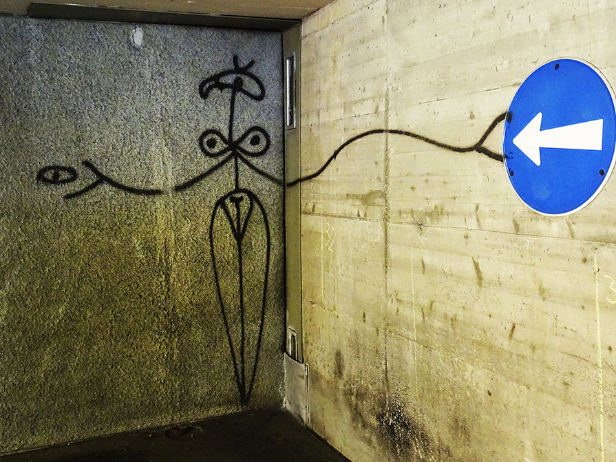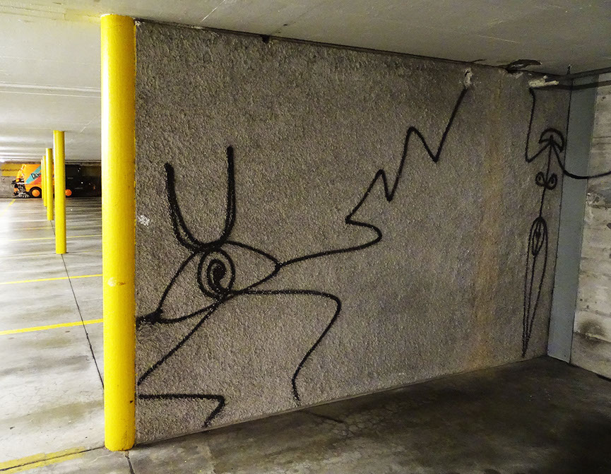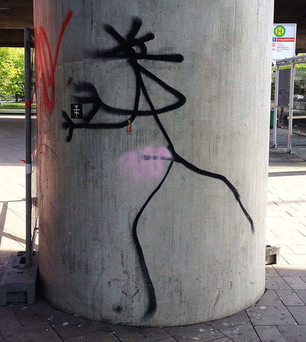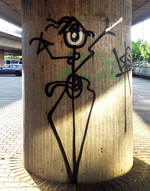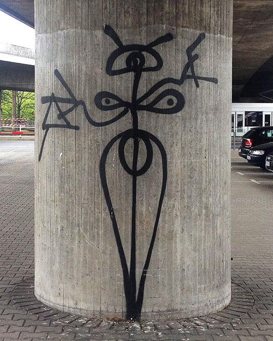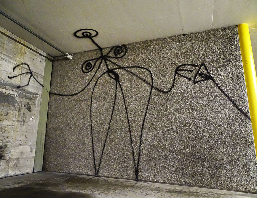 Harald Naegeli (1939). Rheinkniebrücke, Wand, Düsseldorf, 2017. Foto Jula 2812, WikiCommons.