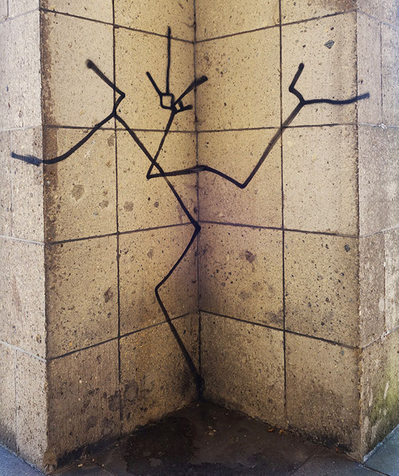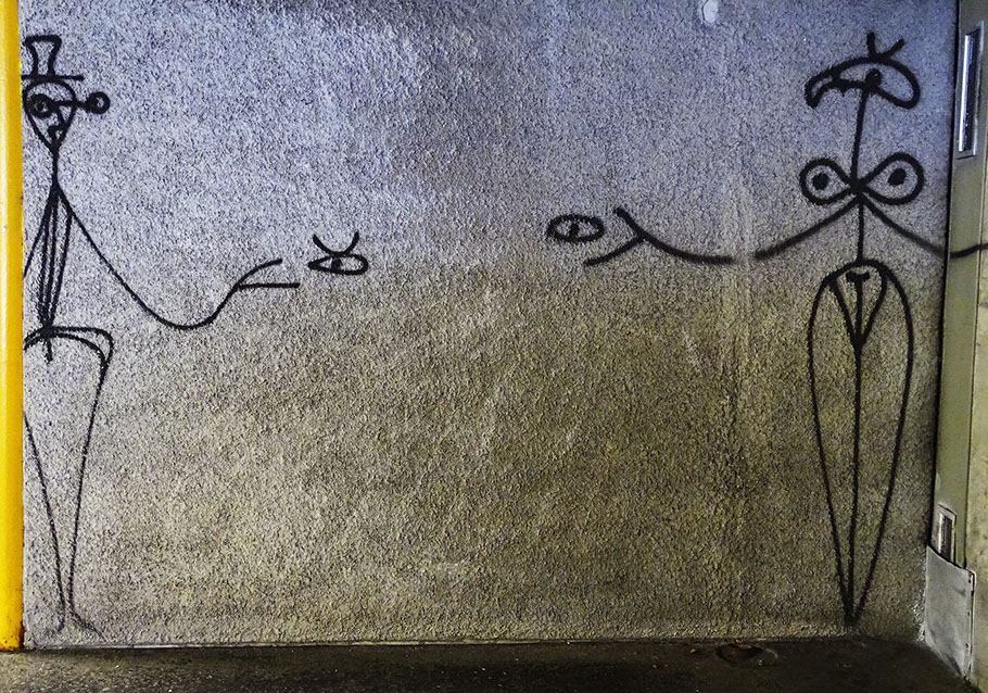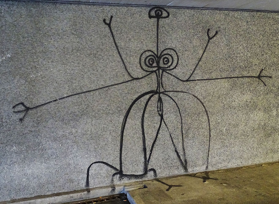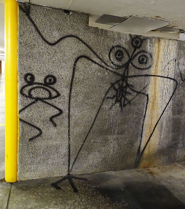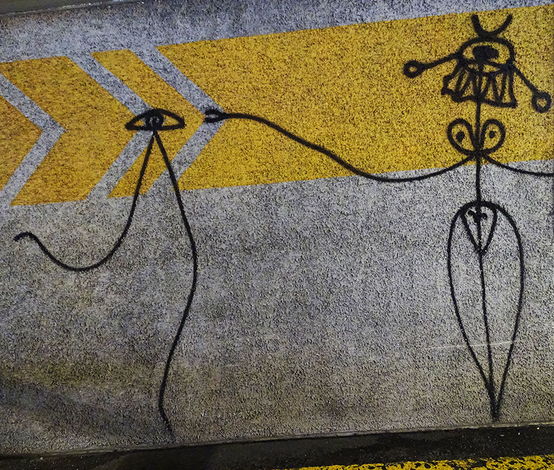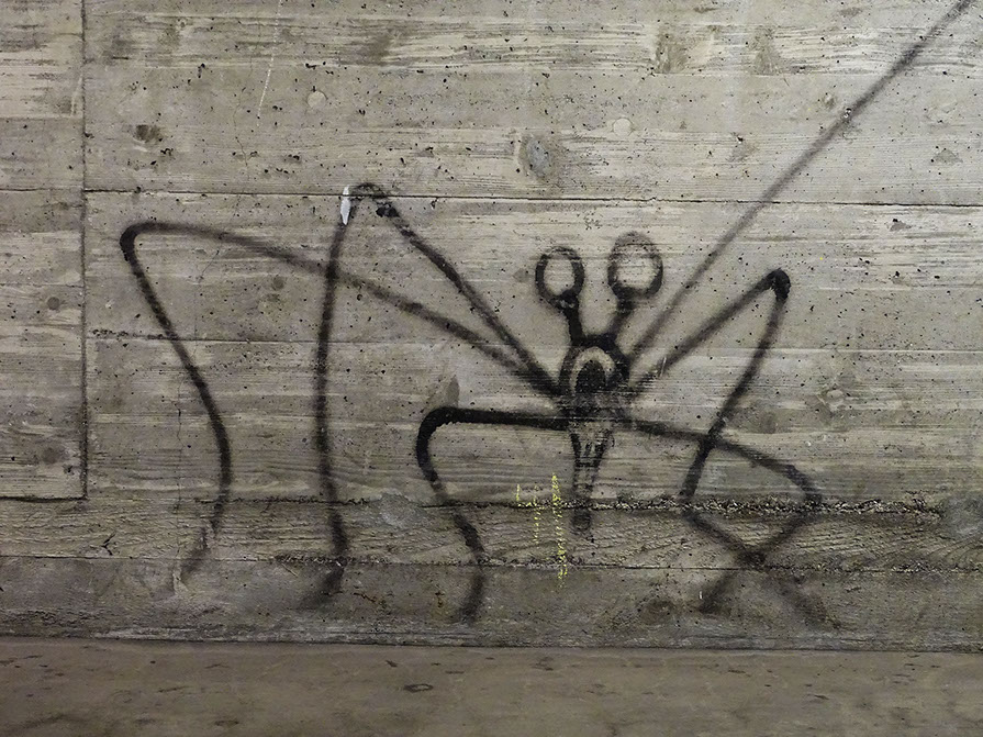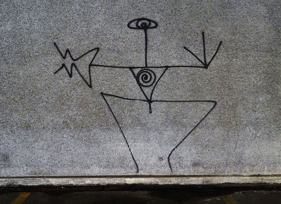 Harald Naegeli (1939). Rheinkniebrücke, Wand, Düsseldorf, 2017. Foto Jula 2812, WikiCommons.
