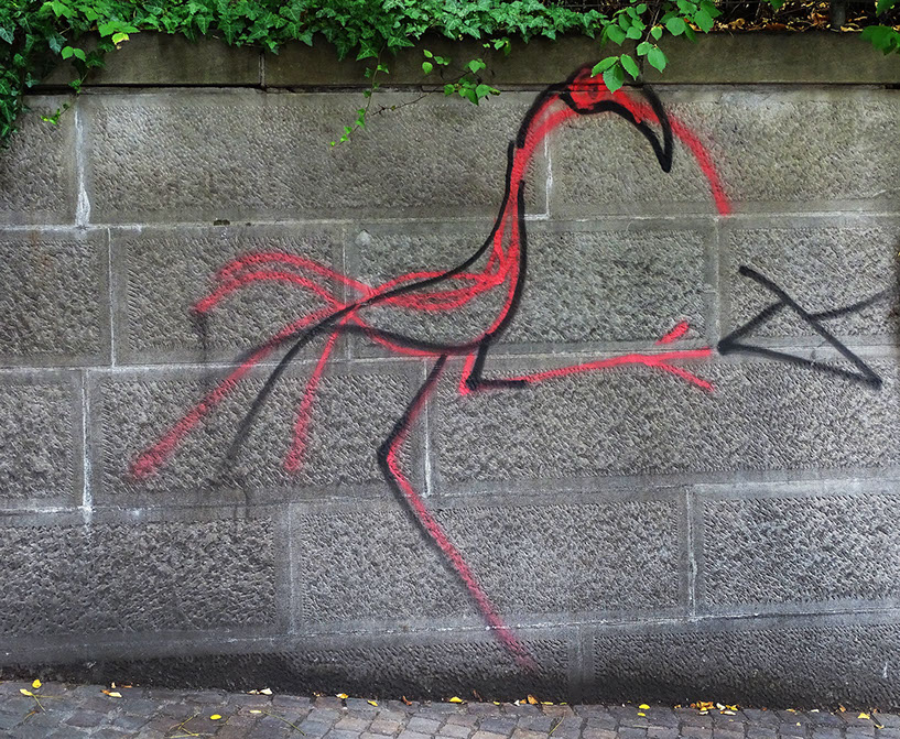 Harald Naegeli (1939). Flamingo, Aufnahme 2020. Rämistrasse, Zürich.