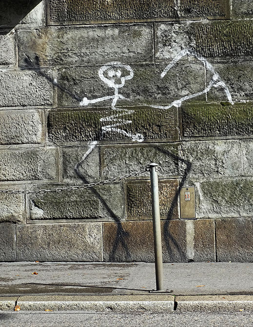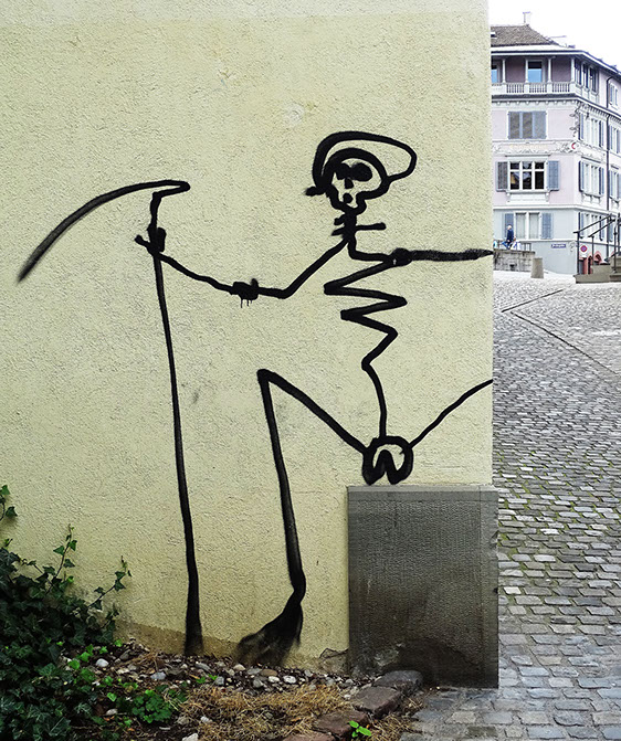 Harald Naegeli (1939). Aus der Serie Totentanz 2020. Lydia-Welti-Escher-Hof, Zürich.