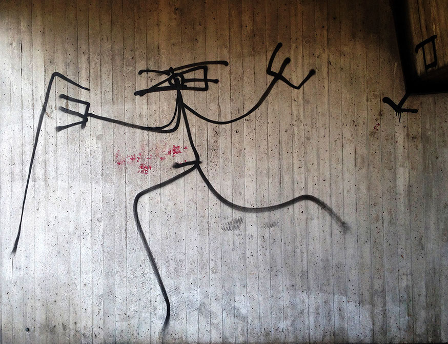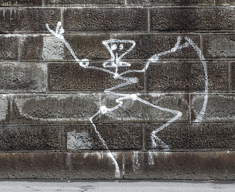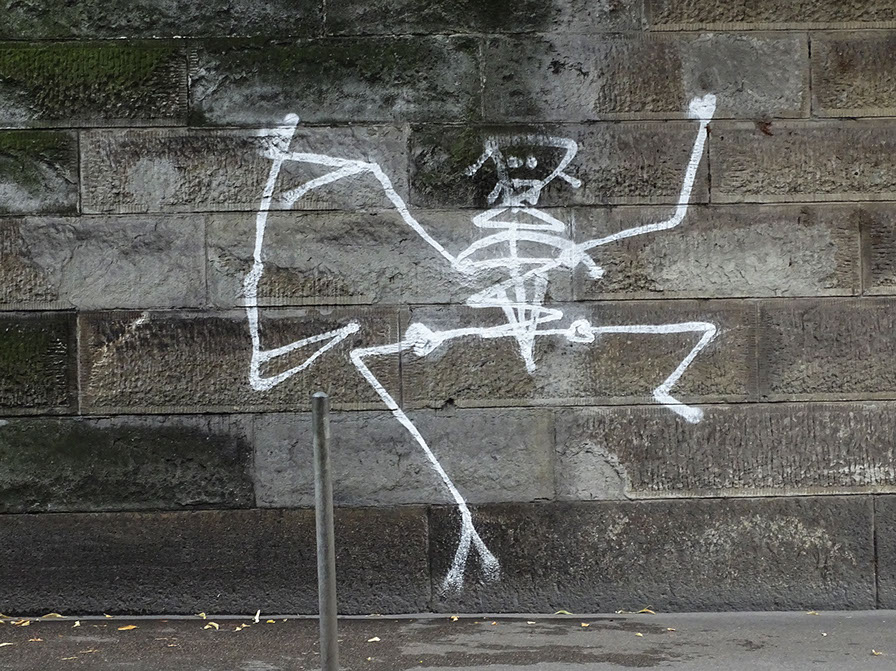Harald Naegeli (1939). Aus der Serie Totentanz 2020. Universitätsquartier, Platte Zürich.
