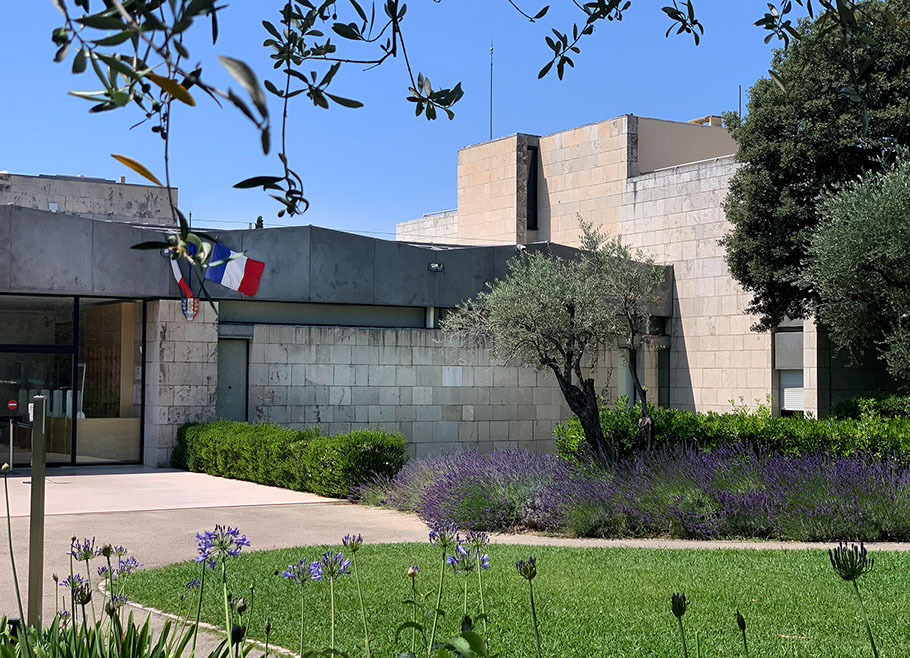 Musée Marc Chagall, Nizza. Mosaikmauer vor dem Museum.