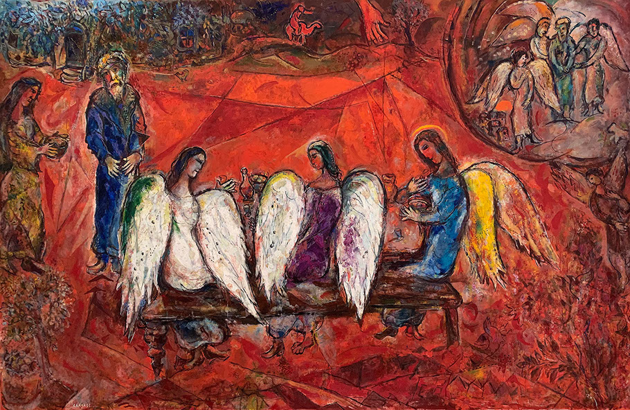 1960-Marc Chagall (1887-1985). Abraham et les trois anges, 1960-66. Detail. Musée Marc Chagall, Nice.