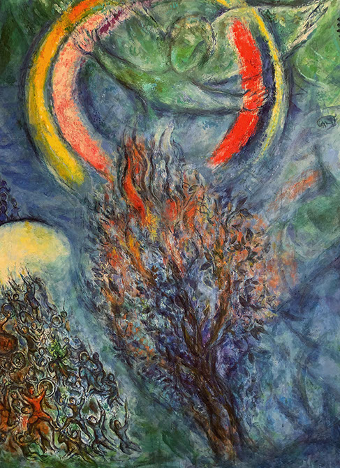 1960-Marc Chagall (1887-1985). Moïse devant le buisson ardent, 1960-66. Detail. Musée Marc Chagall, Nice.