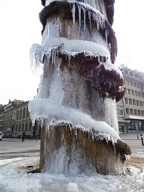 1983-Meret Oppenheim (1913-1985). Der Oppenheim-Brunnen am Waisenhausplatz in Bern, 1983. Winter-Detail.