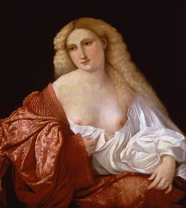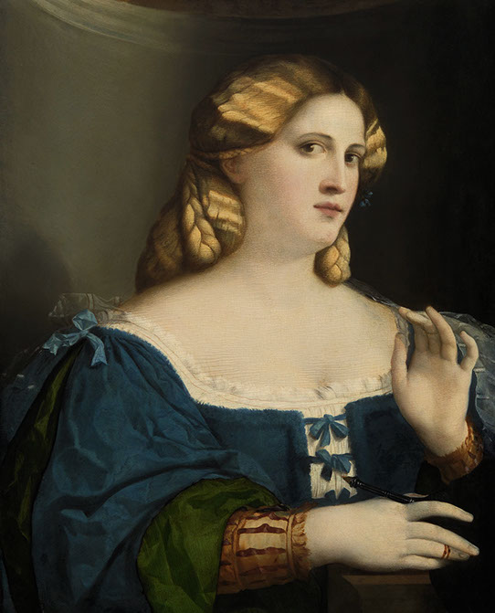 1520-Jacopo Palma (1480-1528). Porträt einer Kurtisane, 1520. Foto WikiArt Public Domain.