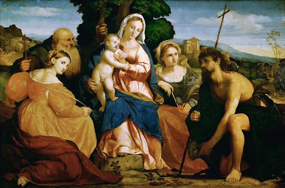 1520-Jacopo Palma. Maria mit Kind und hl. Katharina, Joh.d.Täufer, hl.Barbara, 1520-22. Kunsthist. Museum Wien.
