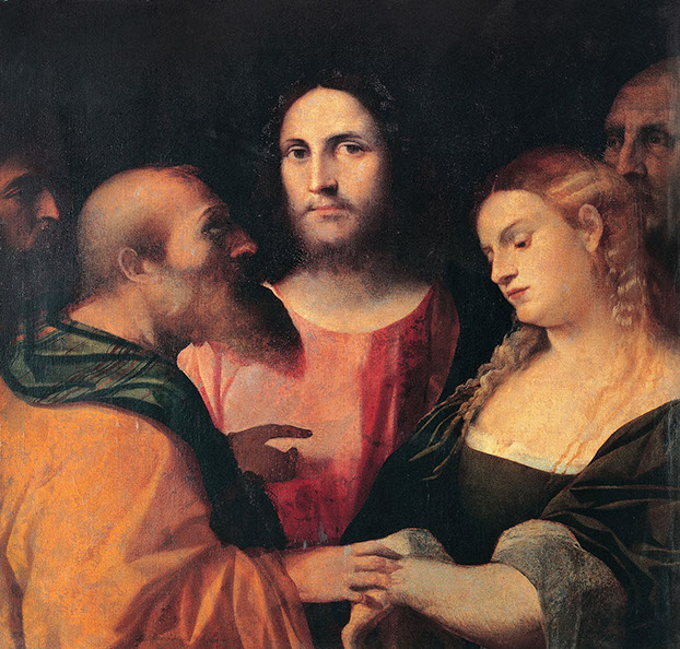 1525-Jacopo Palma (1480-1528). Christus und die Ehebrecherin, 1525-28. Kapitolinische Museen, Rom.