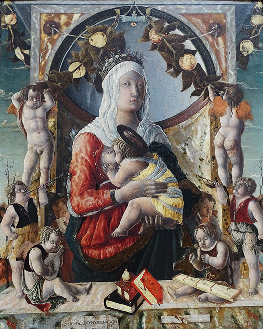Marco d'Antonio-di-Ruggero (LO ZOPPO, 1433-1478). La Vierge et l'Enfant entourés de huit anges, 1455. Louvre Paris.