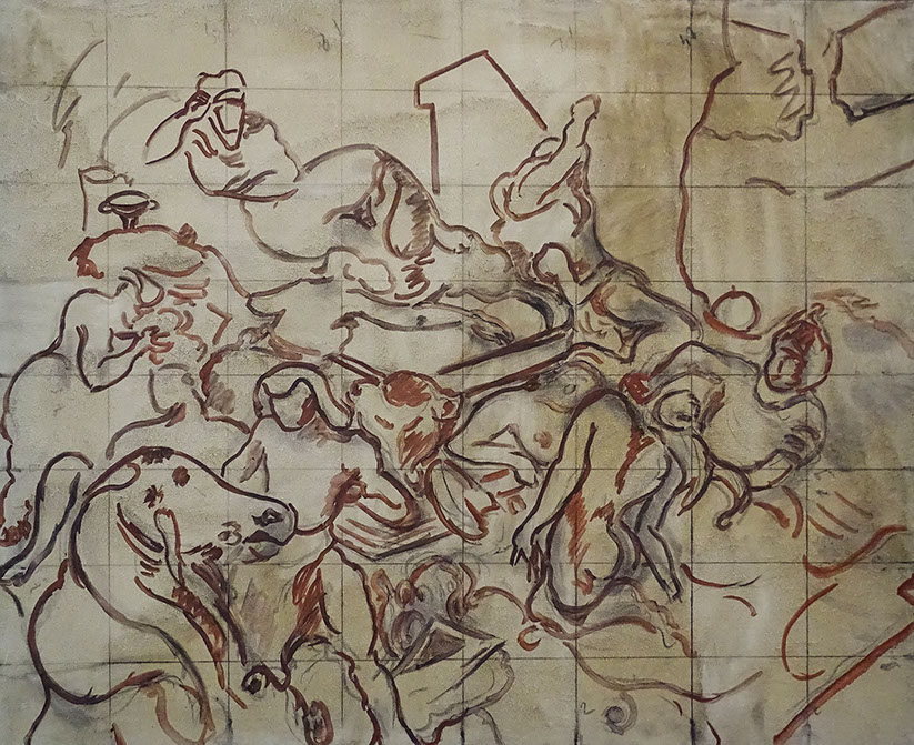 Odilon Redon (1840-1916). Copie du plafond de Delacroix décorant la Galerie d'Apollon au Louvre, 1872.