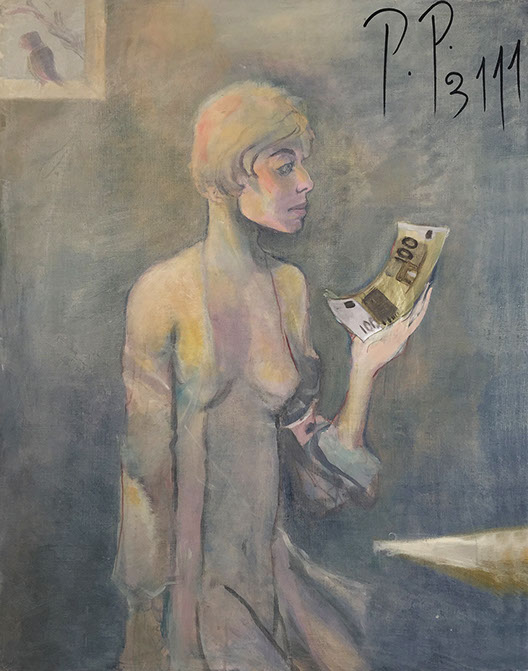 Pavel Pepperstein (1966). Die graue Periode. Xenia with a 100 Euro Note, 2016. Kunsthaus Zug.