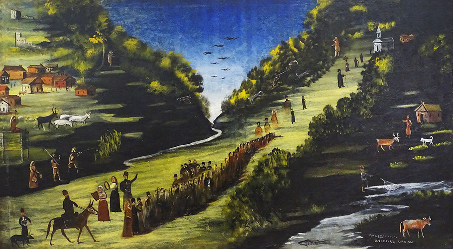 Niko Pirosmani (1862-1918). Fest am Fluss Zcheniszkali, Öl auf Wachstuch. Georgisches Nationalmuseum, Tbilissi.
