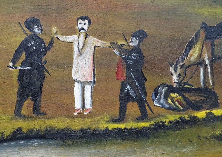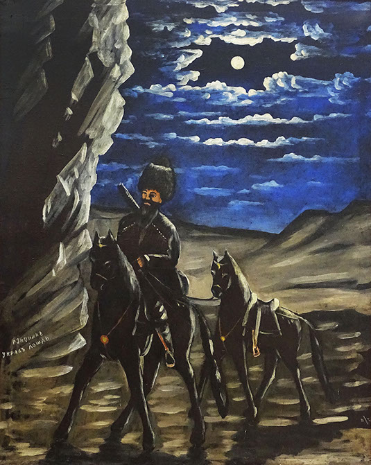 Niko Pirosmani (1862-1918). Räuber mit gestohlenem Pferd, Öl auf Wachstuch. Georgisches Nationalmuseum, Tbilissi.