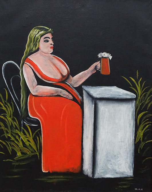 Niko Pirosmani (1862-1918). Frau mit Bierkrug, Öl auf Wachstuch. Georgisches Nationalmuseum, Tbilissi.
