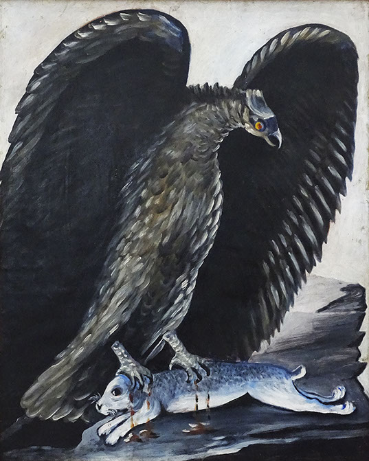 Niko Pirosmani (1862-1918). Hase in den Fängen eines Adlers, Öl auf Karton. Georgisches Nationalmuseum, Tbilissi.