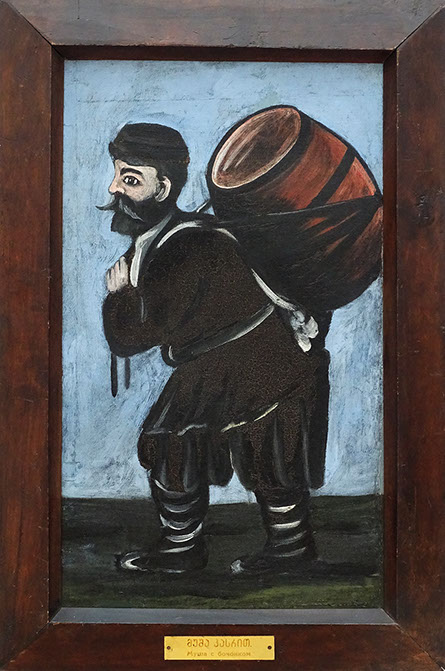 Niko Pirosmani (1862-1918). Lastträger mit Weinfass (Teil eines Diptychons). Georgisches Nationalmuseum Tbilissi.