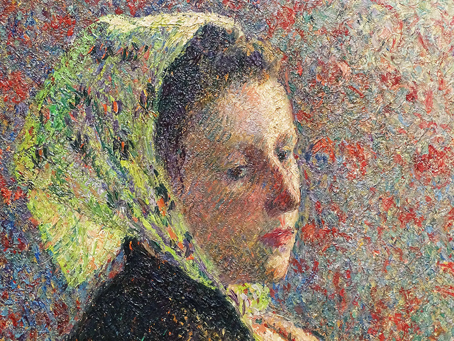 1893-Camille Pissarro (1830-1903). Femme au fichu vert, 1893. Detail. Musée d'Orsay Paris.