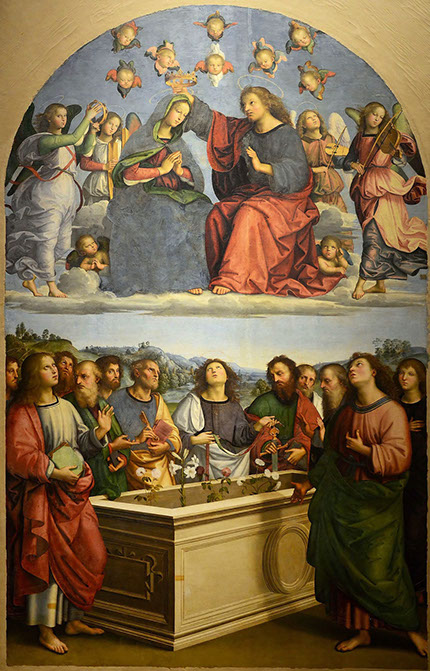Raffael (1483-1520). The Coronation of the Virgin (Oddi Altarpiece), 1502-03. Pinacoteca Vaticana.