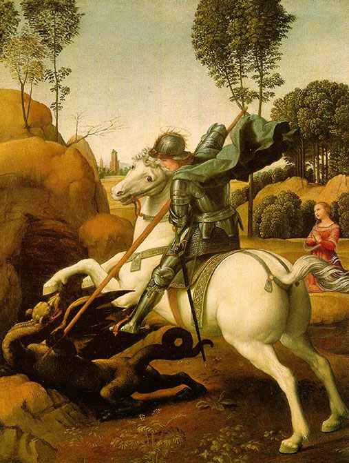 Raffael (1483-1520). Der hl. Georg im Kampf mit dem Drachen, 1504-06. National Gallery of Art, Washington.
