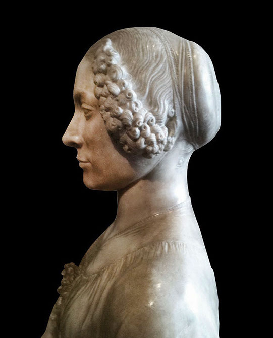 1475-Andrea del Verrocchio (1435-1488). Dame mit Blumenkranz, 1475-1480. Museo Bargello, Firenze.
