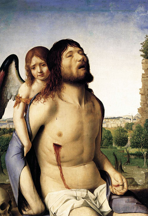 1475-Antonello da Messina (1430-1479). Dead Christ supported by an Angel, 1475-78. Museo del Prado, Madrid.