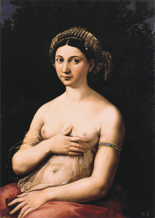 1518-Raffael (1483-1520). La Fornarina (Margherita Luti?), 1518-19. Galleria Nazionale d'Arte Antica, Rom.