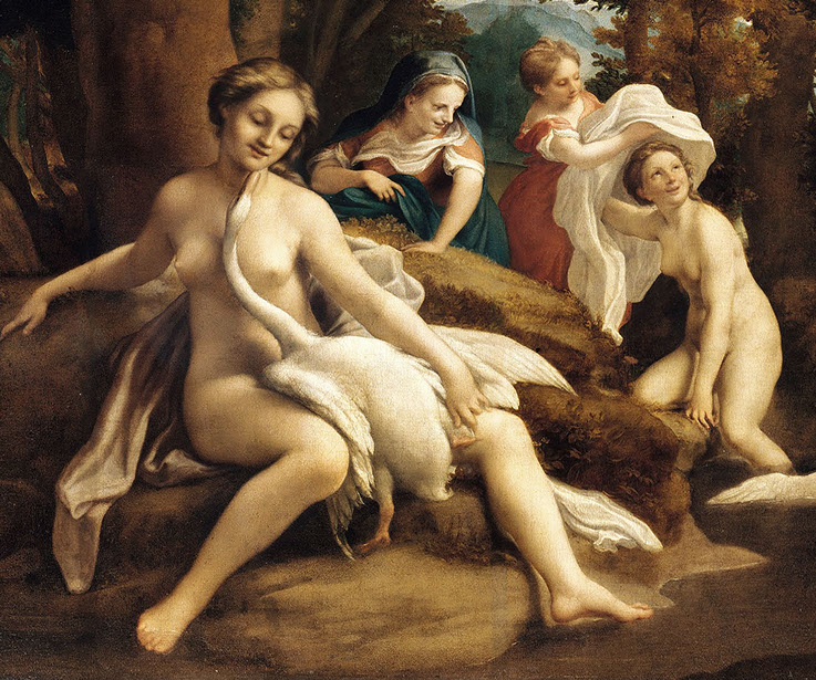 1532-Correggio (1489-1534). Leda mit dem Schwan, 1532. Detail. Gemäldegalerie Berlin.