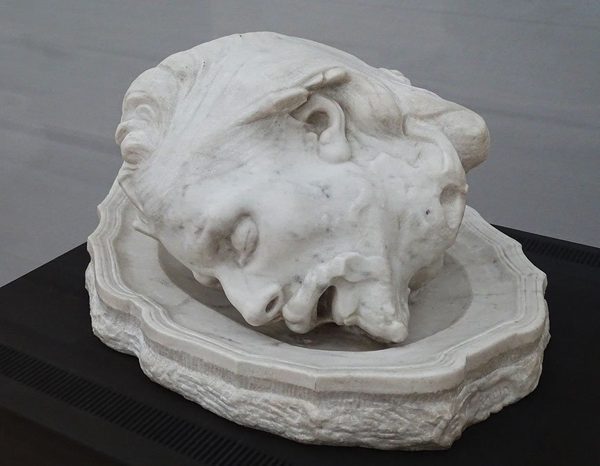 1887-Auguste Rodin (1840-1917). Tête de Saint Jean Baptiste dans un plat, 1887. Marmor. Daniel Katz Gallery London.