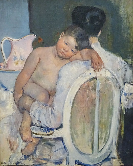 Mary Cassatt (1844-1926). Mother about to wash her sleepy Child, 1880. Los Angeles County Museum of Art.