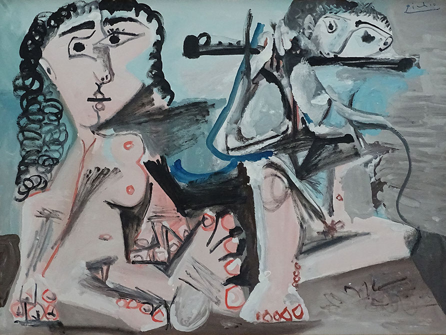1970-Pablo Picasso (1881-1973). Joueur de flûte et femme nue, 1970. Anthax Collection Marx, Fondation Beyeler.