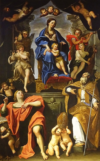 Domenichino (Domenico Zampieri, 1581-1641). Madonna col Bambino e i santi Petronia e Giovanni Evangelista.