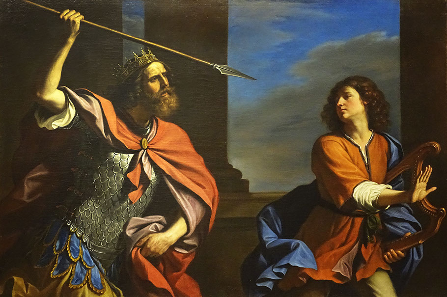 Guercino (1591-1666). Saul tenta di colpire David con la lancia. Galleria Barberini, Rom.