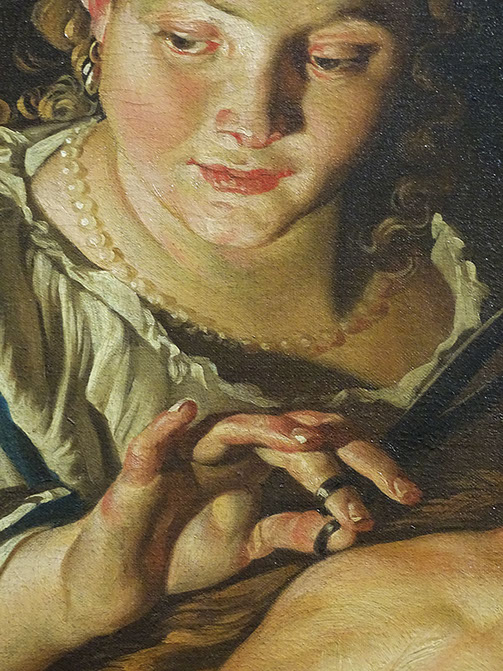 Mathias Stomer (1600-1650). Sansone e Dalila. Detail. Galleria Barberini, Rom.