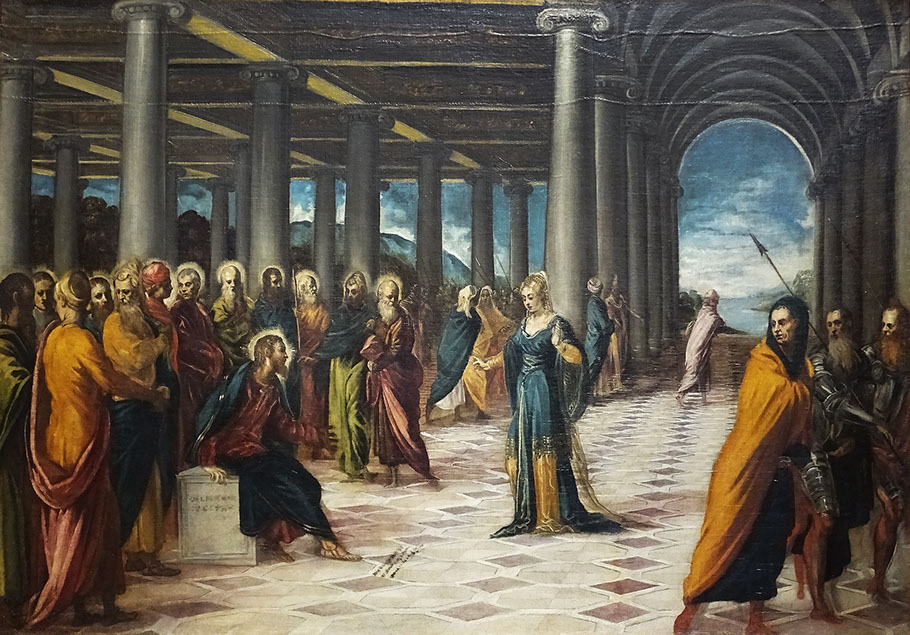 Tintoretto (1519-1594). Cristo e l'adultera. Galleria Barberini, Rom.