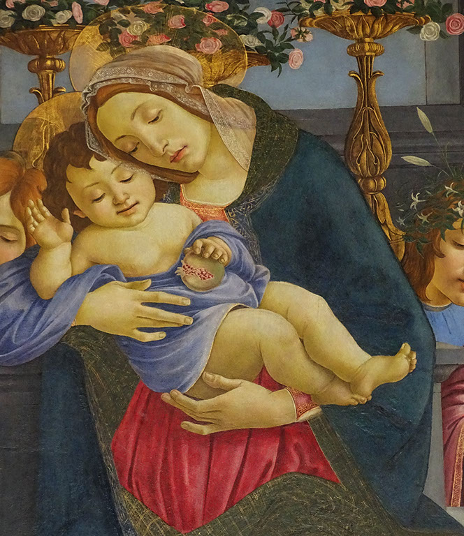 Botticelli (1445-1510). Madonna col Bambino, San Giovannino e angeli, 1488. Detail. Galleria Borghese, Rom.