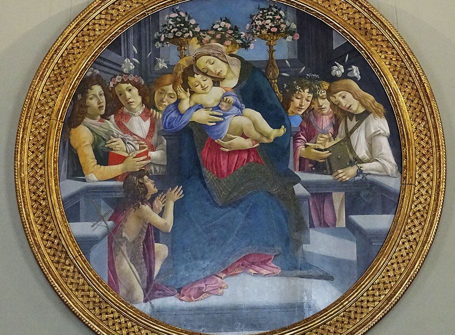 Botticelli (1445-1510). Madonna col Bambino, San Giovannino e angeli, 1488. Galleria Borghese, Rom.
