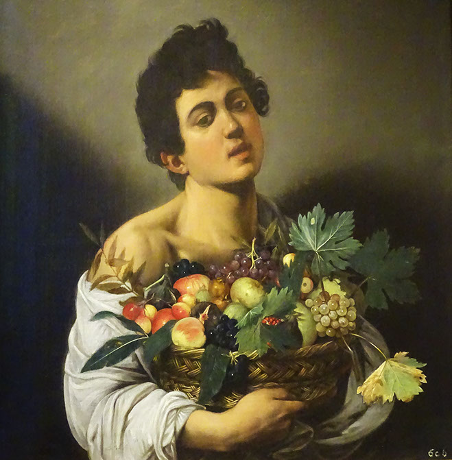 Caravaggio (1571-1610). Giovane con canestra di fruta, 1593-95. Galleria Borghese, Rom.