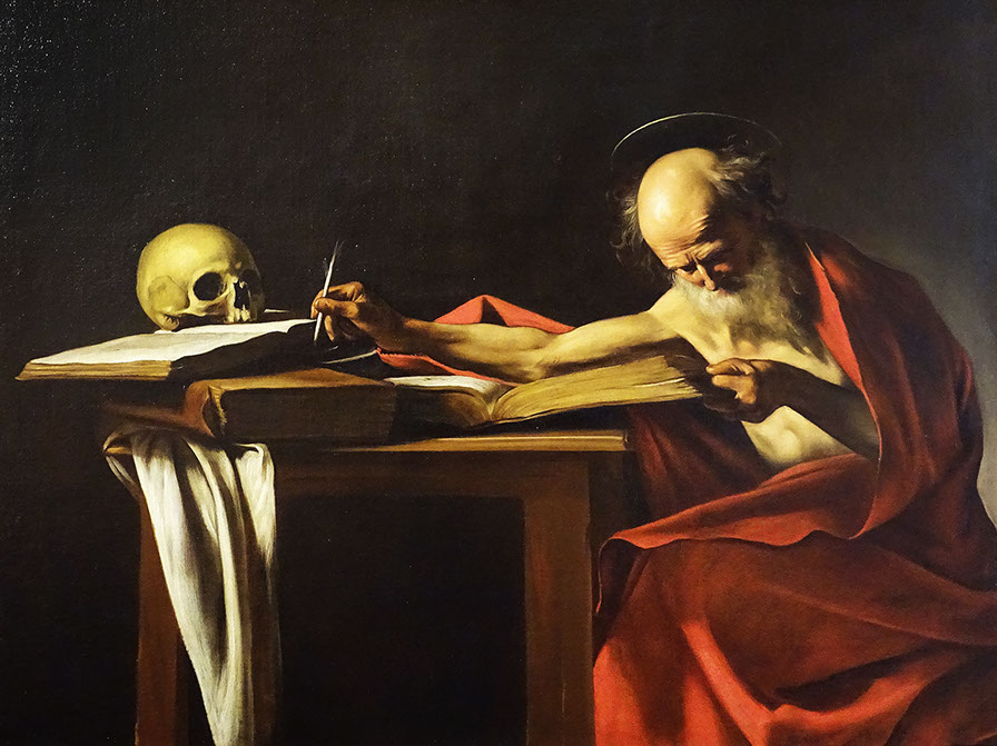 Caravaggio (1571-1610). San Gerolamo, 1605-06. Galleria Borghese, Rom.