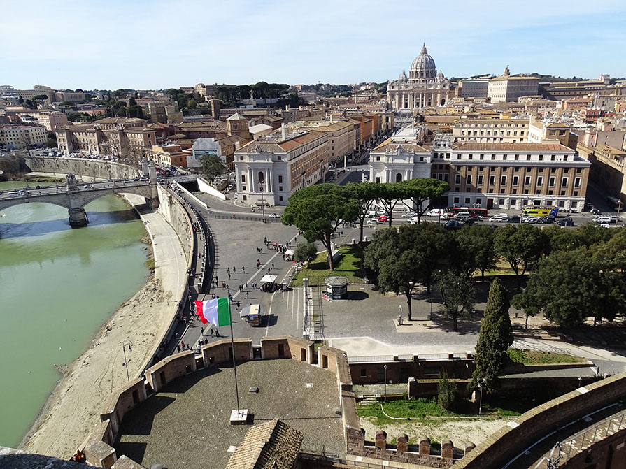 Blick von der Engelsburg auf den Dom, mit Via della Conciliazione.