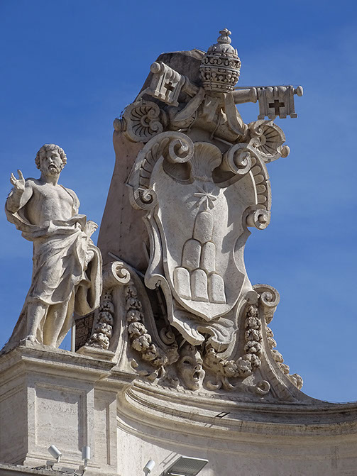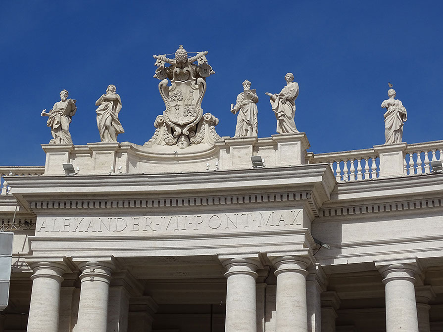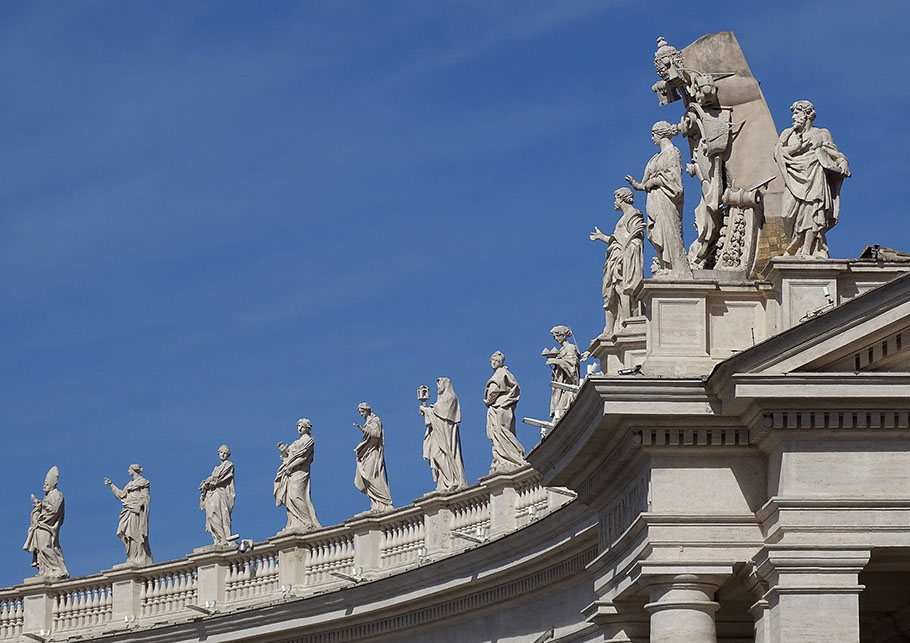 Die Heiligenfiguren von Berninis Schülern auf dem Gesims der Kollonaden.