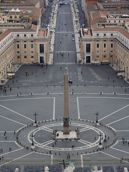 Obelisk auf der Piazza San Pietro und Via della Conciliazione, die zur Engelsburg führt.