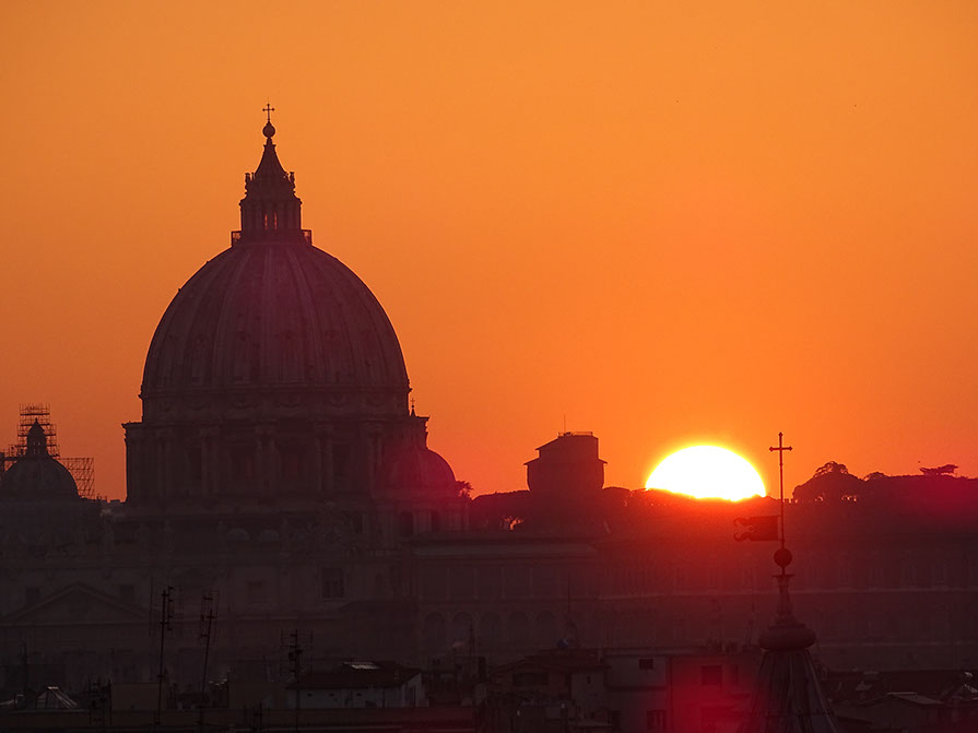 Petersdom bei Sonnenuntergang, vom Hügel Pincio aus gesehen.