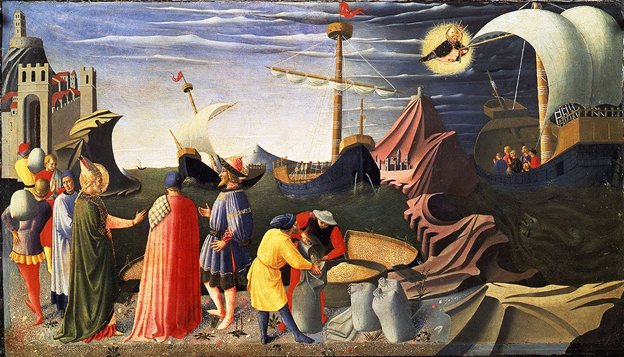 Fra Angelico (1395-1455). Aus dem Leben des hl. Nikolaus von Bari. Die wunderbare Rettung eines Schiffes.